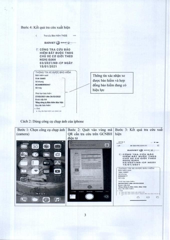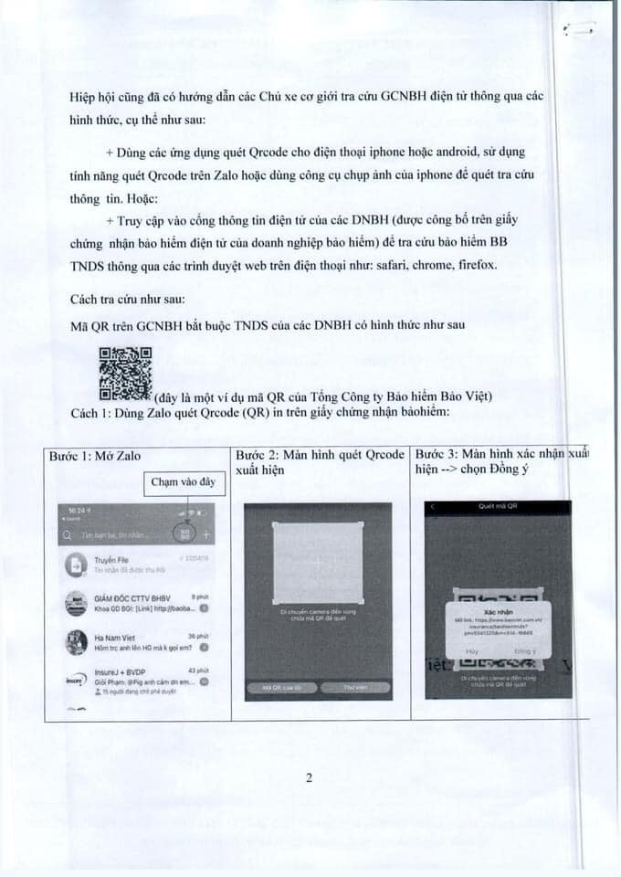 Trong thông báo, hiệp hội bảo hiểm hướng dẫn chi tiết cách kiểm tra giấy chứng nhận điện tử bằng mã Qrcode được nhận diện qua zalo và ảnh Iphone hay một số phương tiện khác như sau